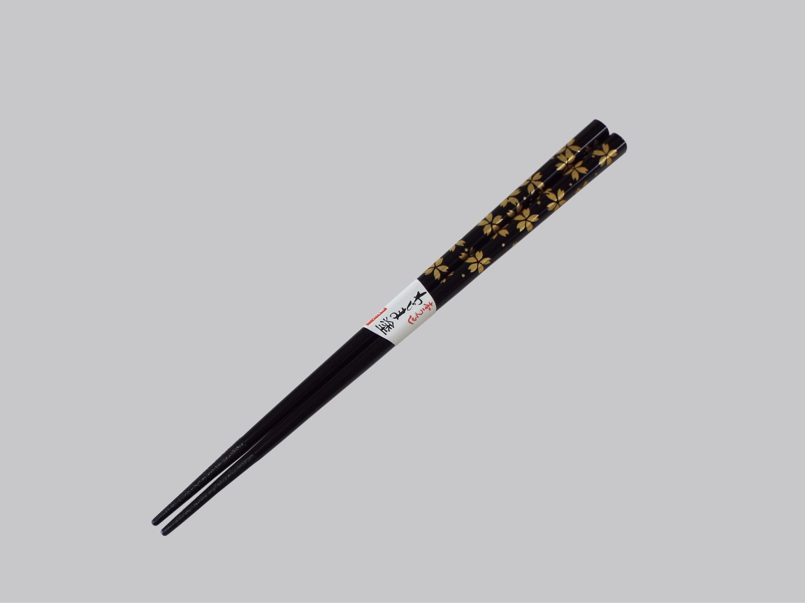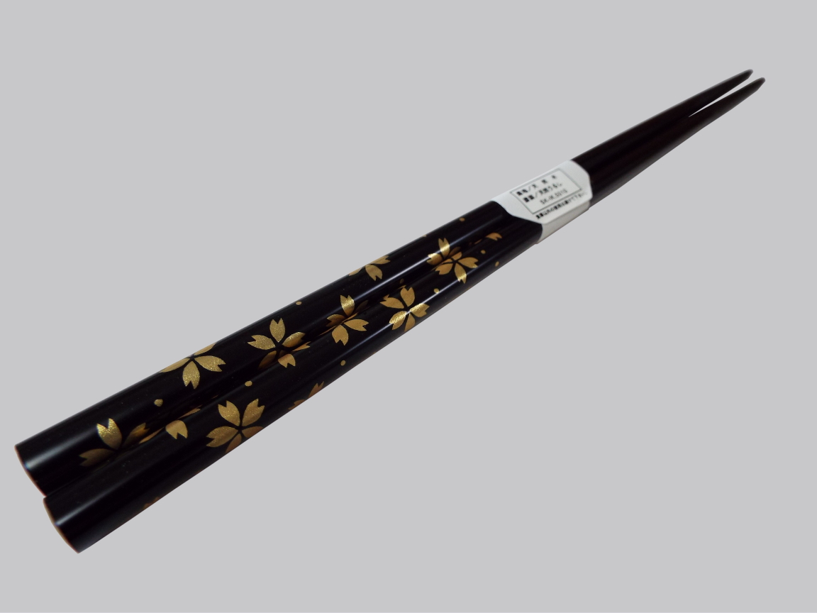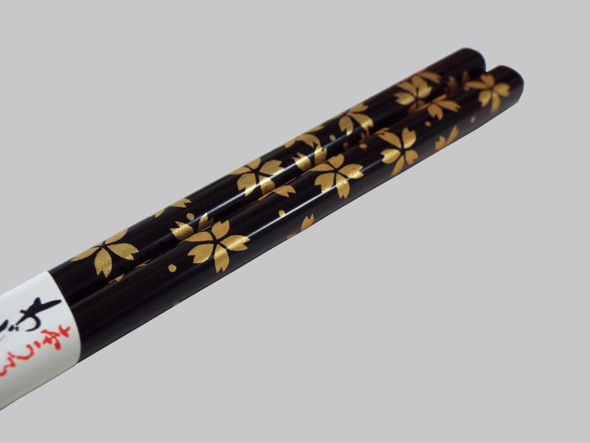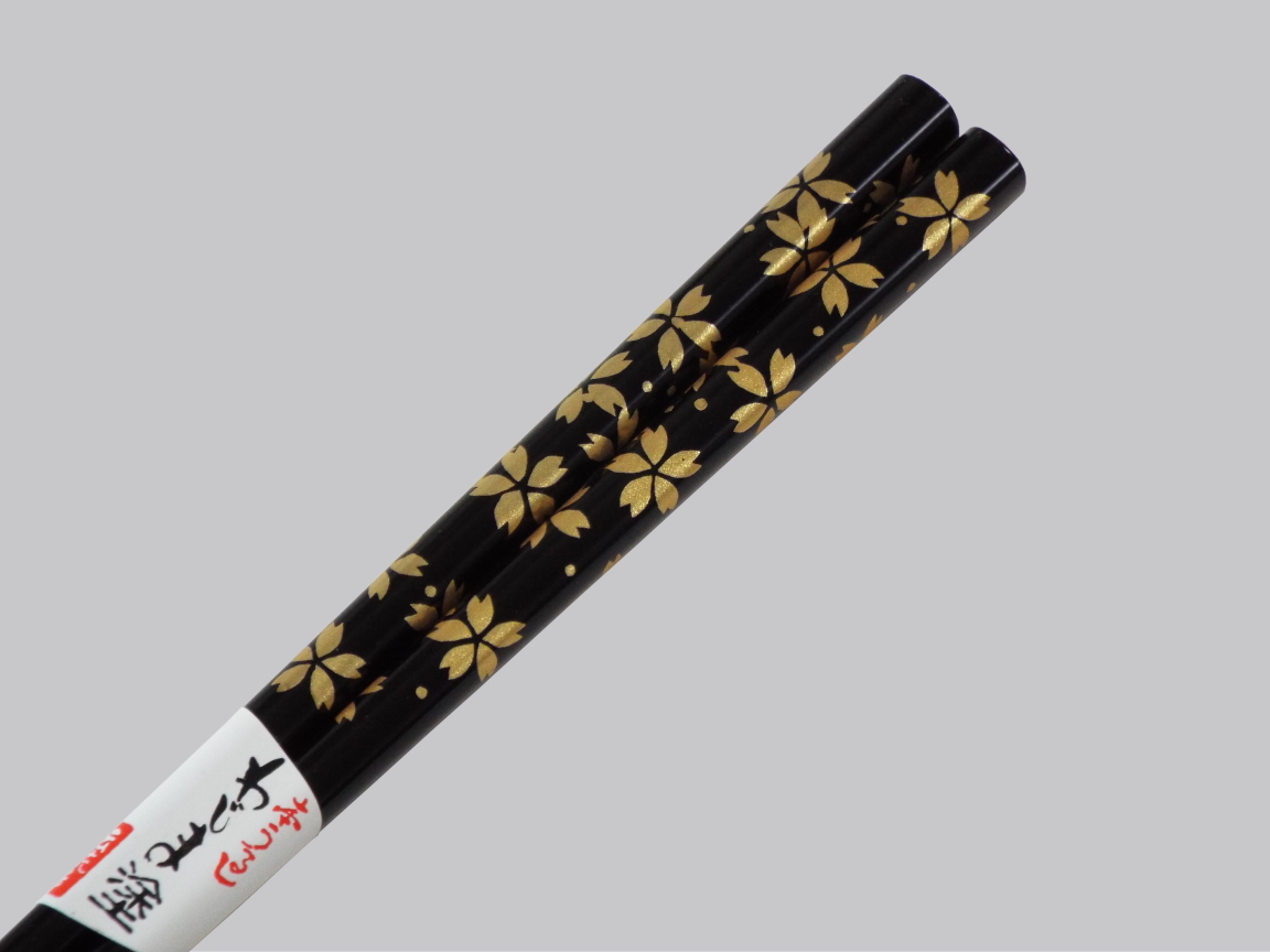 漆の艶やかな輝きと、優しく温かな肌触りが特徴の輪島塗り箸。金の桜が食卓を彩ります。