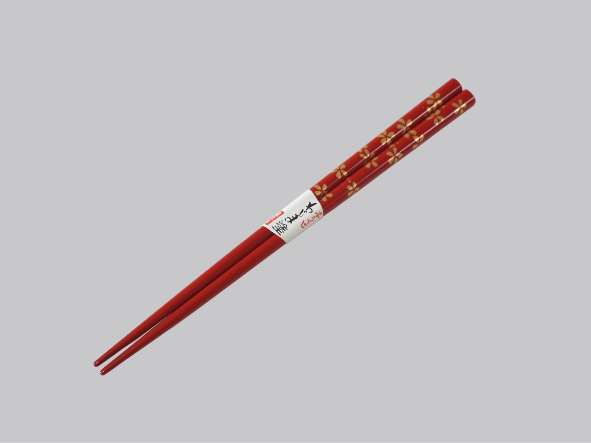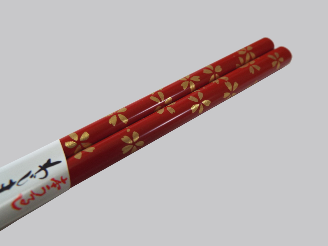 漆の艶やかな輝きと、優しく温かな肌触りが特徴の輪島塗り箸。金の桜が食卓を彩ります。長さ:21cm 定価1,200円(税込