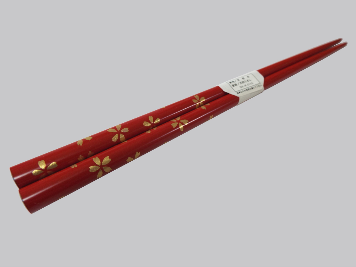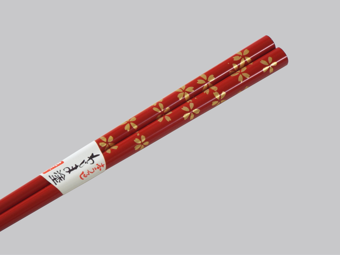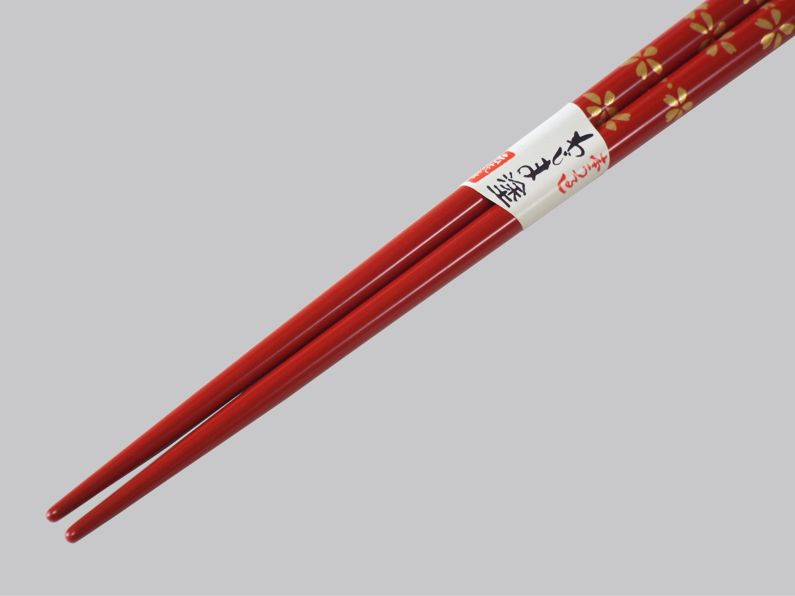 漆の艶やかな輝きと、優しく温かな肌触りが特徴の輪島塗り箸。金の桜が食卓を彩ります。