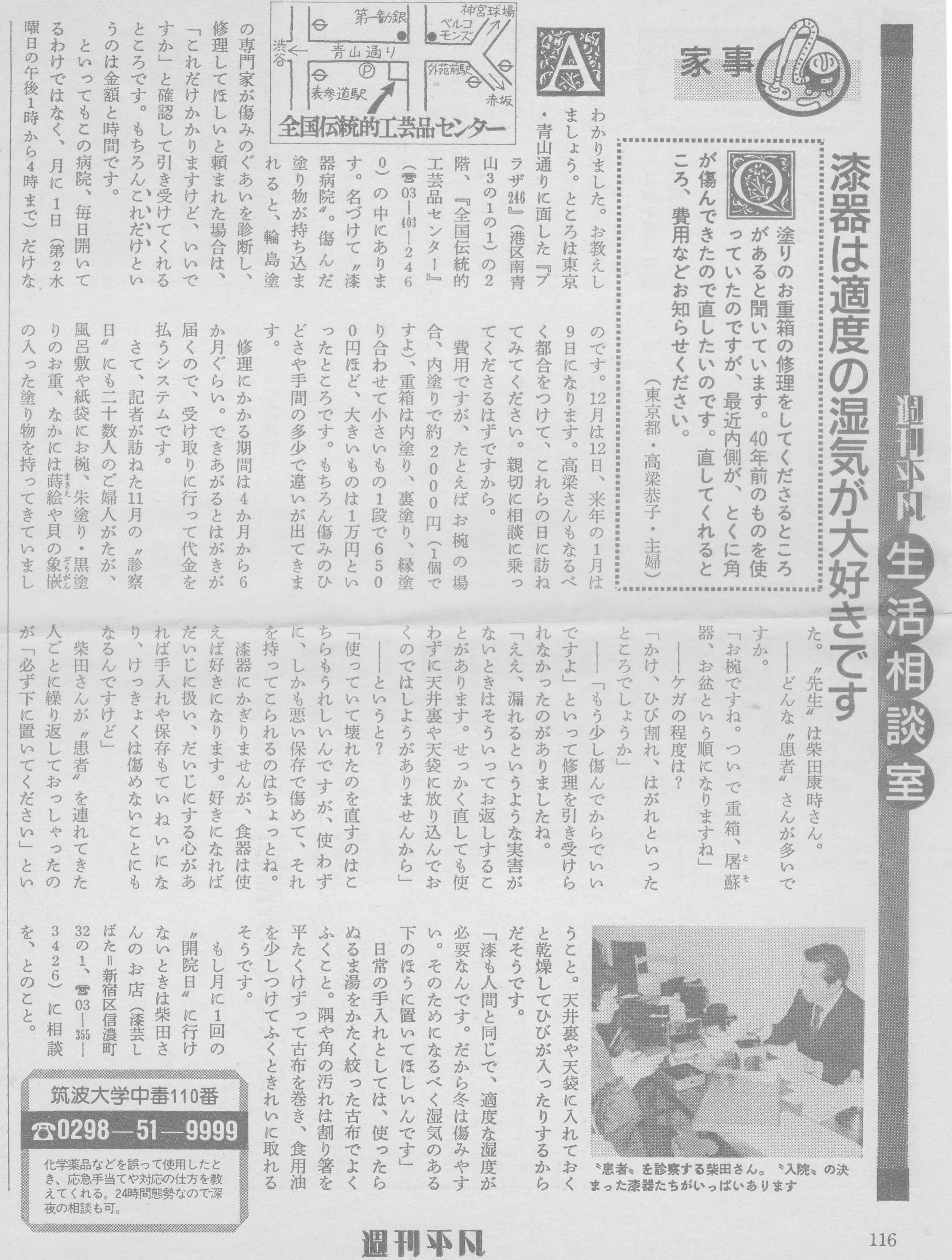 伝統工芸青山スクエア(旧全国伝統的工芸品センター)にて漆器・陶磁器の無料相談を40年以上に渡り行う。